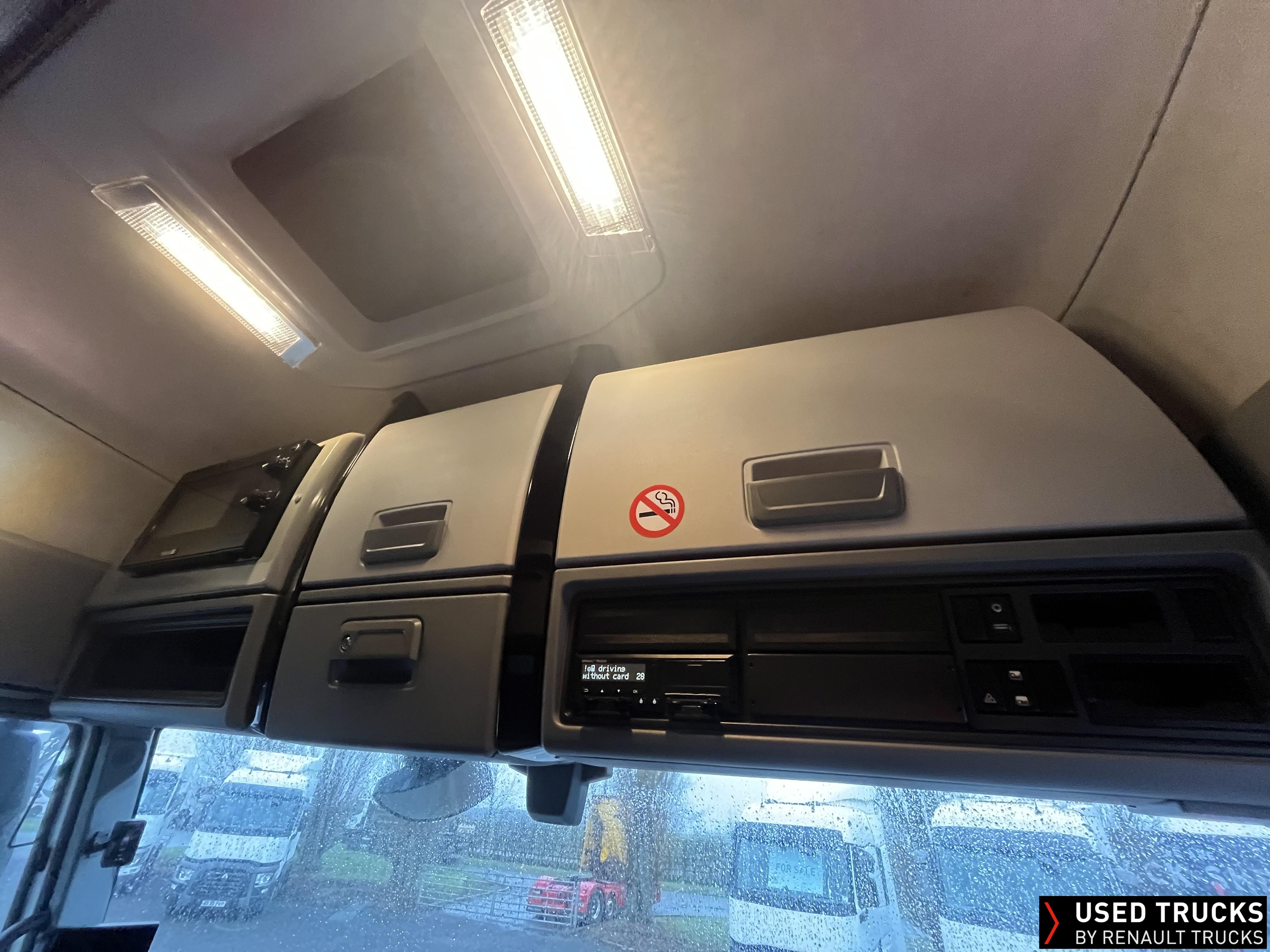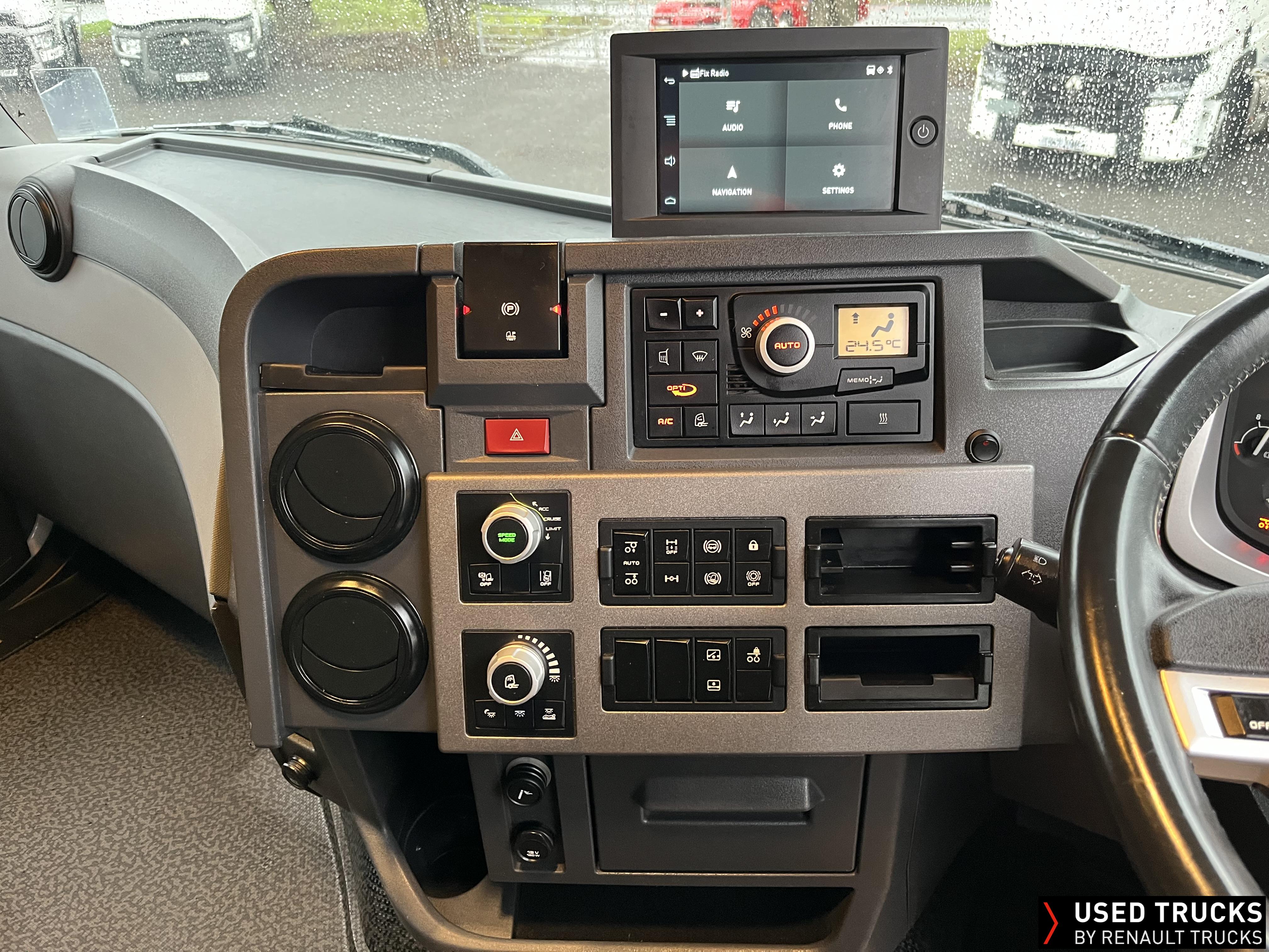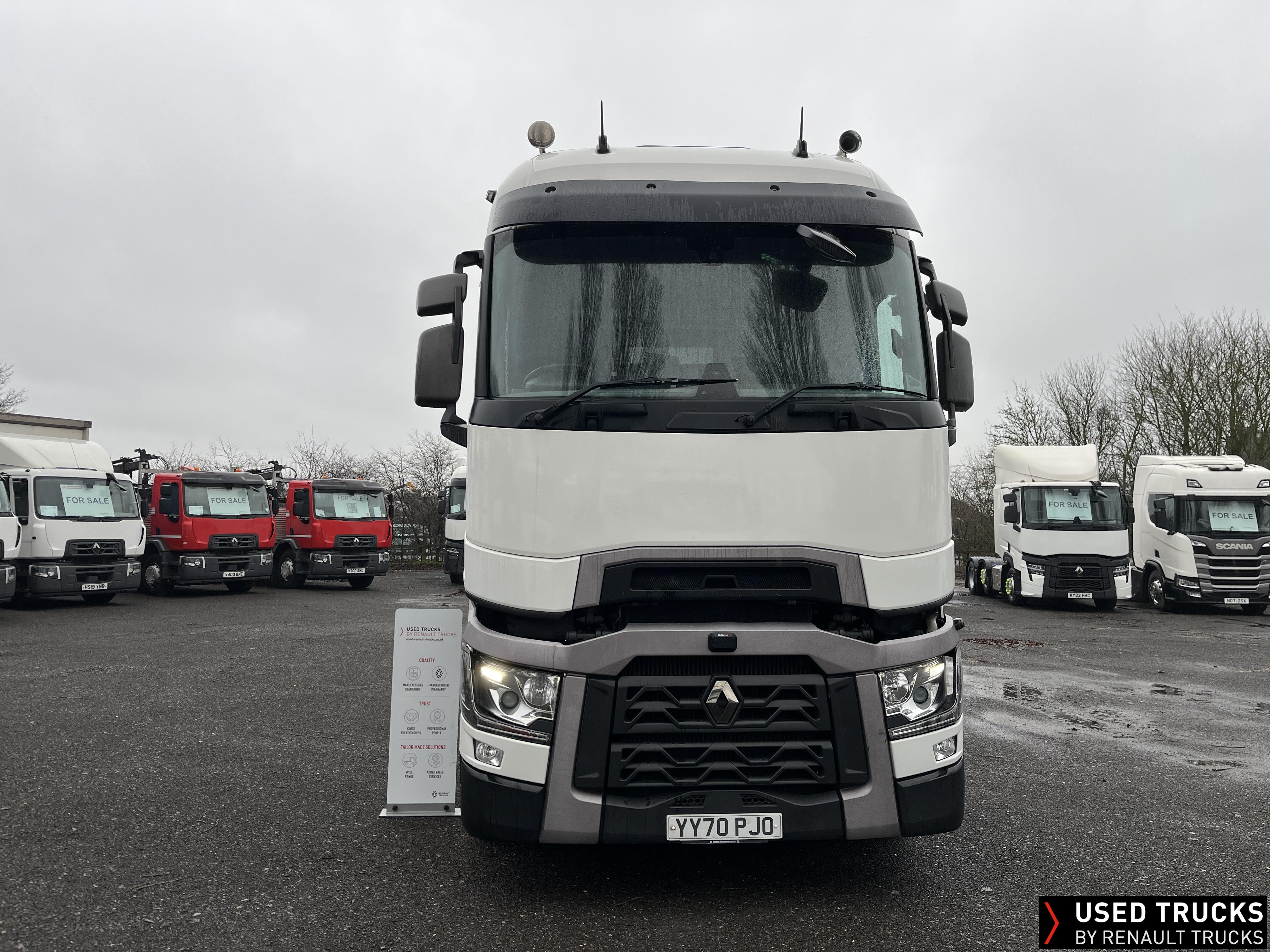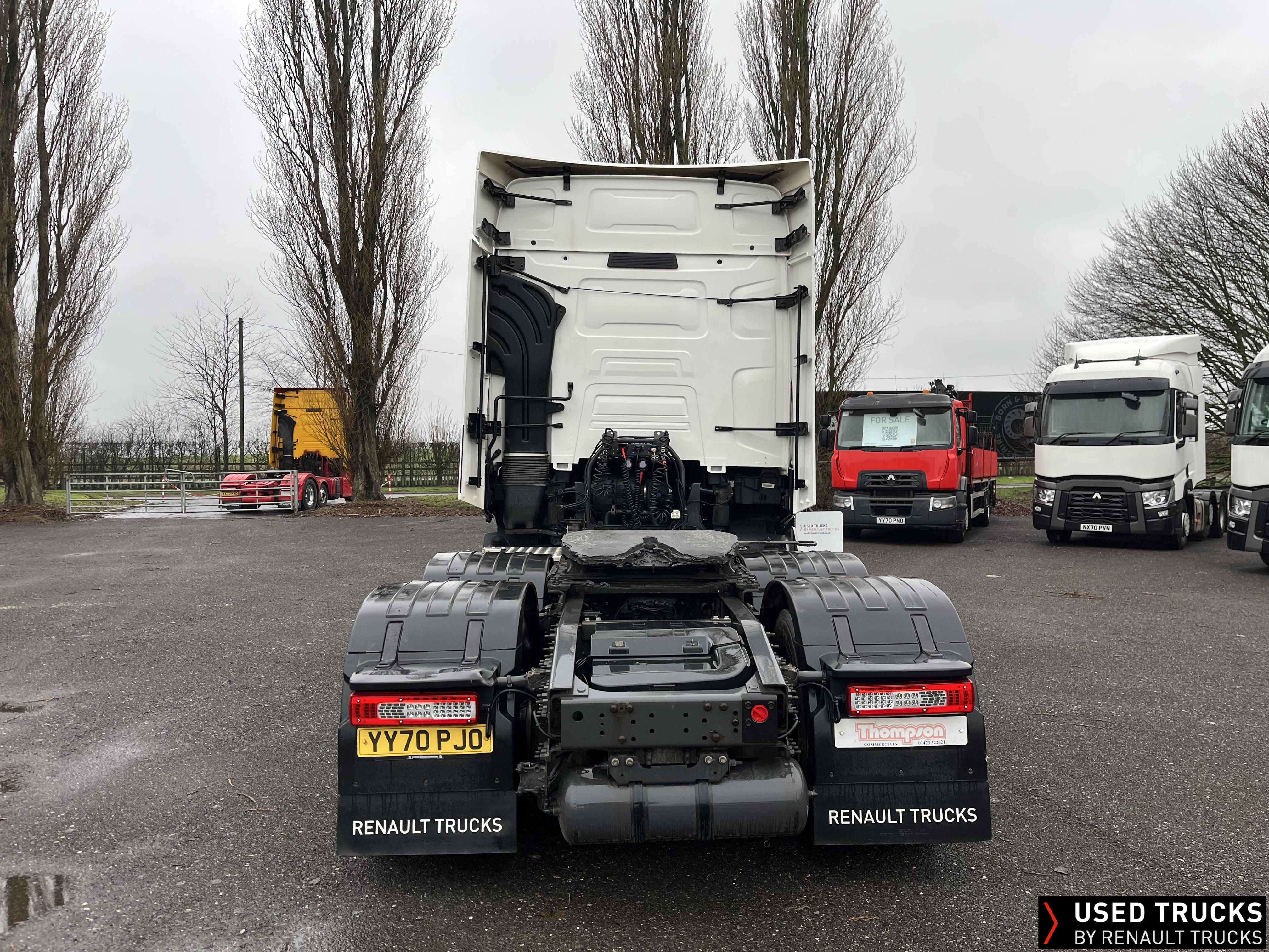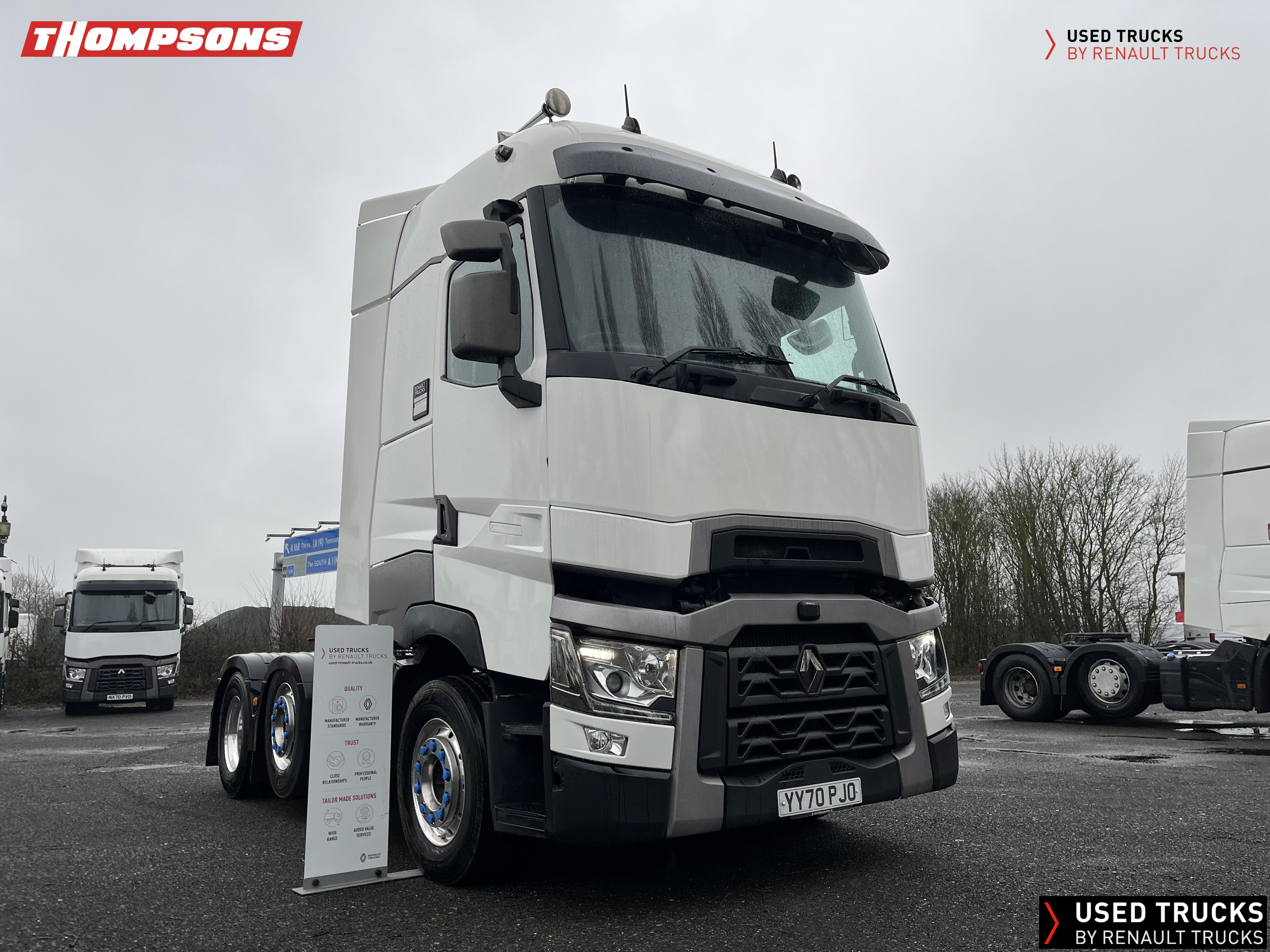 2020 (70) Renault T HIGH 520.26 TML 6x2 Tractor Unit. Maintained on a Renault Full Repair & Maintenance Contract with just 679,307kms. T HIGH Flat Floor Sleeper Cab, 13 LTR 520 BHP Euro 6 Engine & Automatic Gearbox, Engine Brake, 4-Point Cab Air Suspension, Sunvisor, Cruise Control with Optiroll, Lane Departure Warning System, Emergency Brake Assist, Electronically Regulated Comfort Air Conditioning, Full Air Deflector Kit, Electric Windscreen Sunblind, Drawer under Bunk with 40 Litre Fridge, Microwave, Alcoa Dura bright Alloy Wheels, LED Cab Lighting, Remote Control in Bunk Area for Cab Controls, FM/DAB+ Radio with Bluetooth, USB Port & Jack Socket, 4 Loudspeakers & 2 Tweeters. One-Touch Electric Windows, 12/24V Sockets, Sliding 5th Wheel, LED Rear Lights, LED Day Running Lights & LED Work Light, Front Fog Lights, Automatic Lights & Wipers.